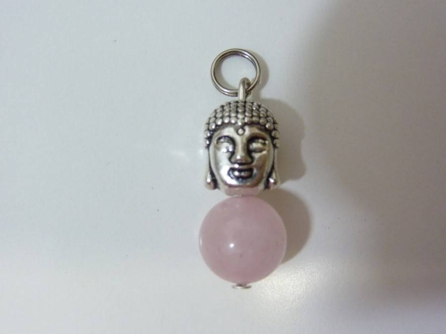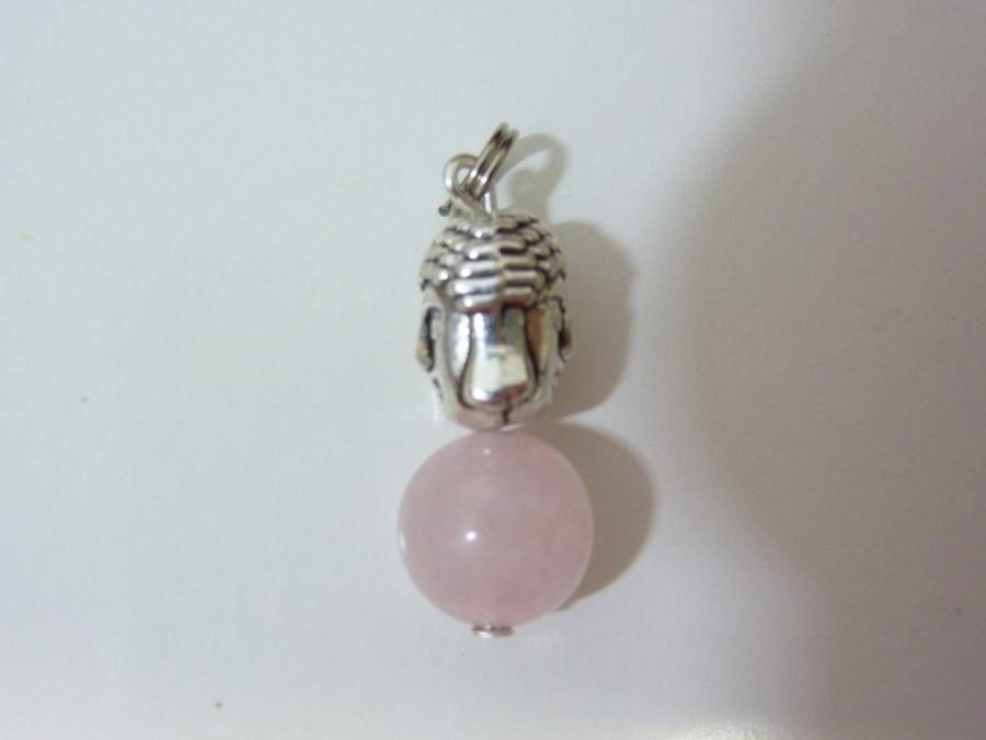 Pendentif douceur quietude Bouddha quartz rose perle 10 mm longueur 2,7 cm
