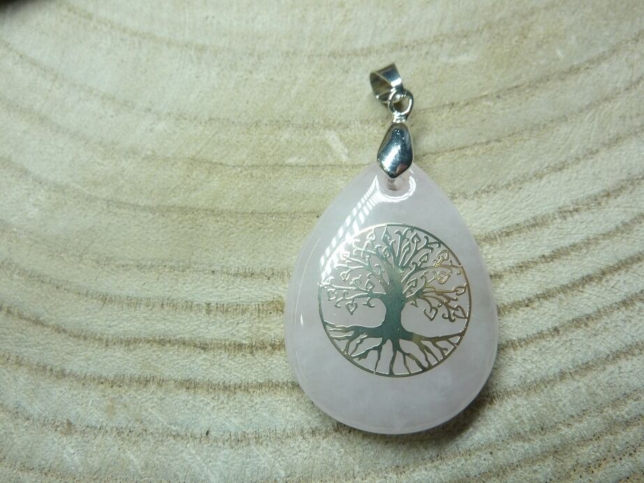 Vous recevrez un Pendentif Quartz rose arbre de vie argent 925 de qualité similaire