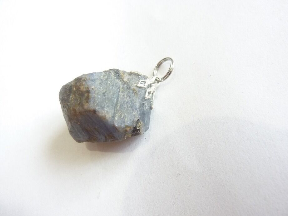 Vous recevrez le Pendentif Saphir brut GG 0311 + Chaine acier inoxydable 45 cm pris en photo