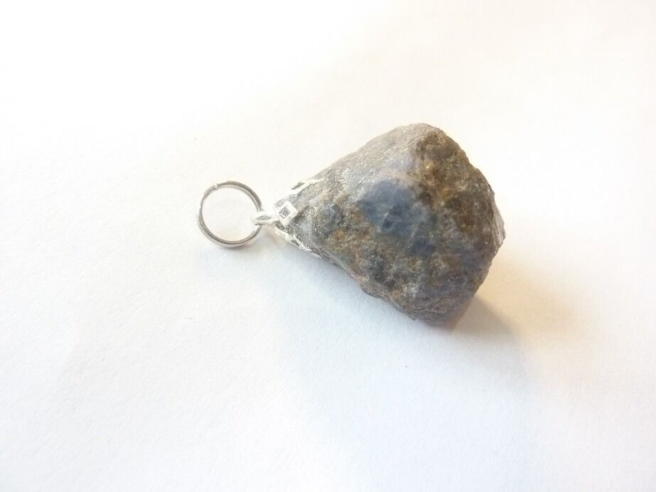 - PENDENTIF SAPHIR BRUT + chaine acier inoxydable 45 cm