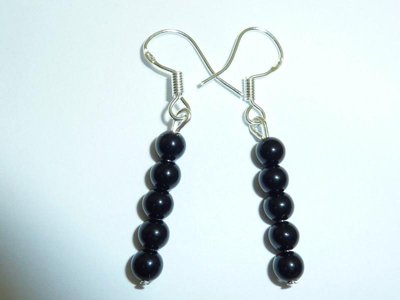 Boucles d’oreilles en tourmaline noire perles rondes 4 mm