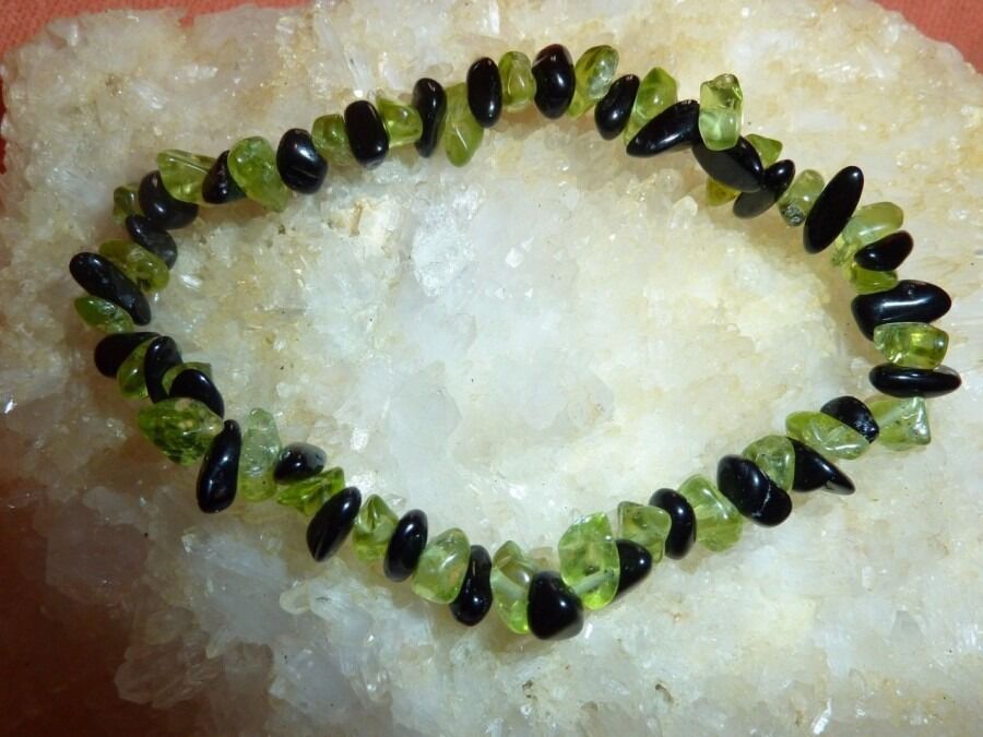 BRACELET PERIDOT ET TOURMALINE NOIRE 6-9MM