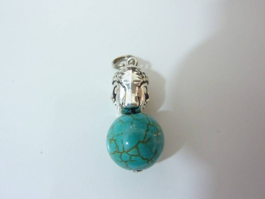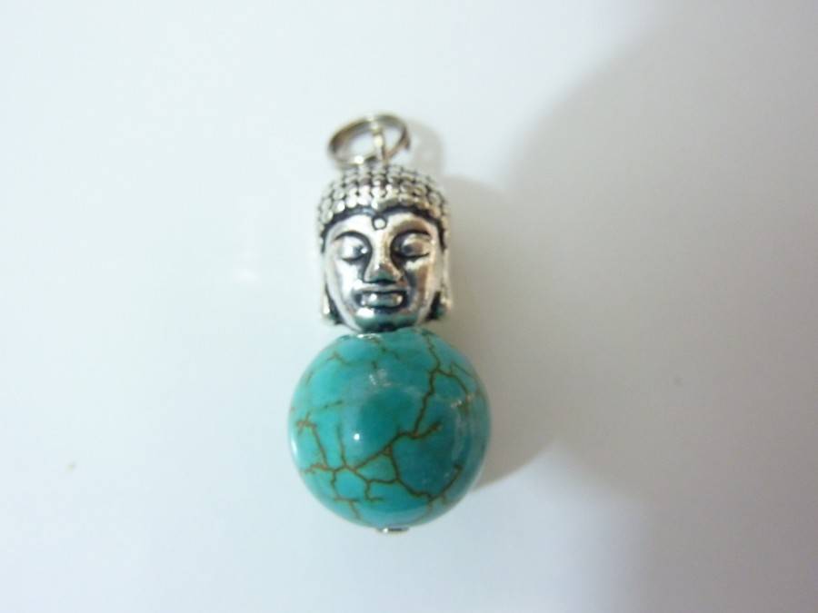 Pendentif Bouddha turquoise perles 12mm longueur 2,9 cm