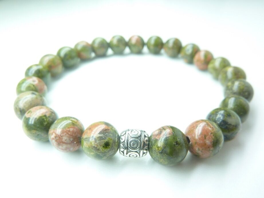 BRACELET UNAKITE EPIDOTE PERLES 8 mm