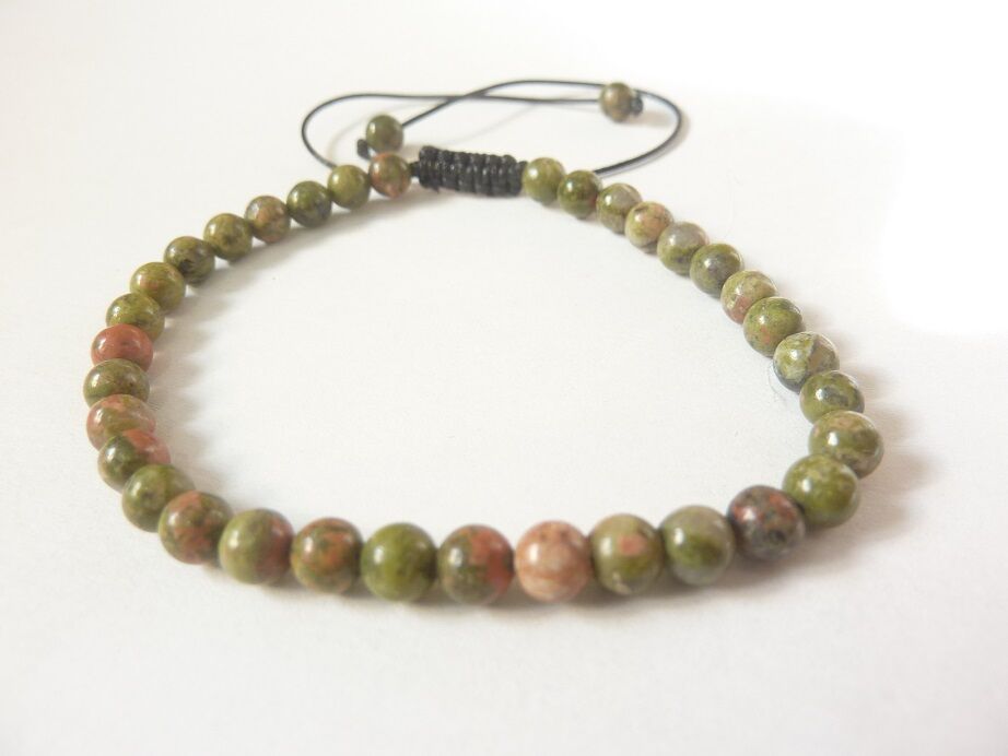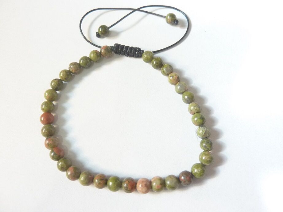 - Bracelet unakite épidote Perles rondes de grade A : 4 mm
