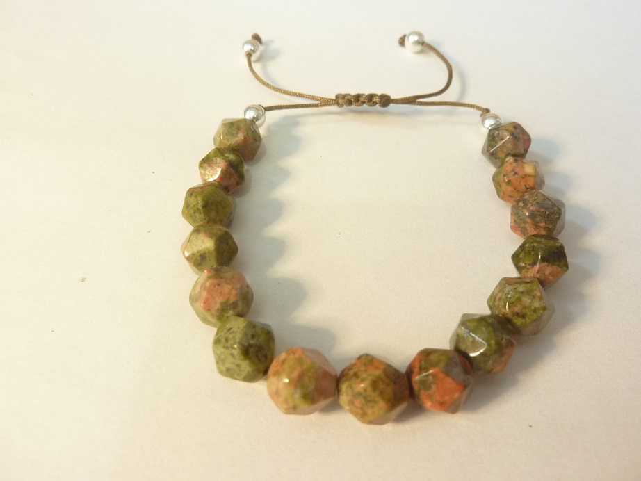 Bracelet Unakite épidote réglable perles 8 mm à facettes